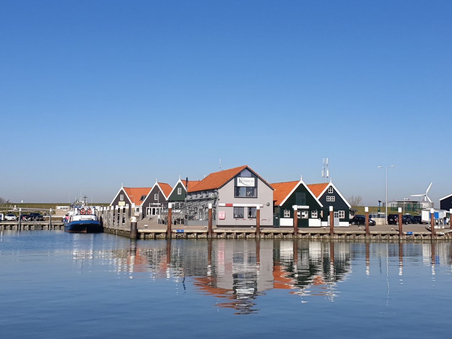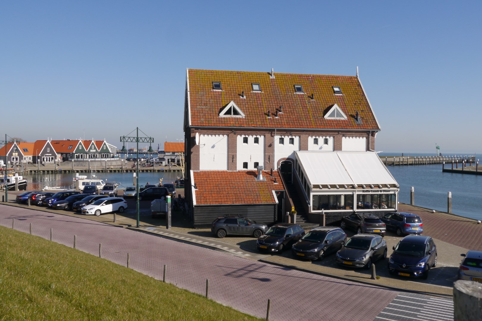Mehrmals im Jahr steigt das Wasser im Hafen von Oudeschild so hoch, dass es über die Kaimauern strömt. Aber das bringt einen Oudeschilder nicht aus der Ruhe.